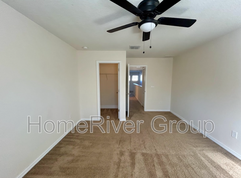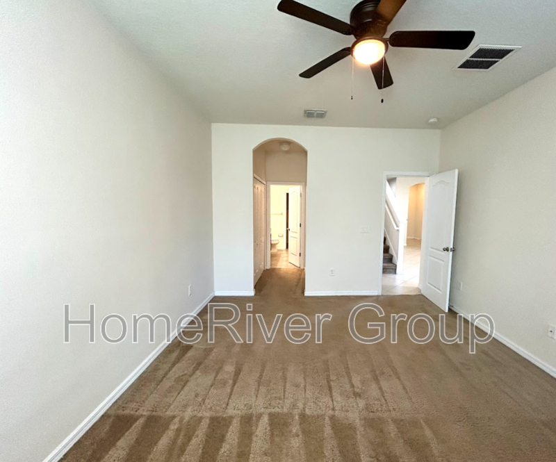 Upstairs, youll find a versatile loft area that can serve as an office or additional living space. Two secondary bedrooms are also located upstairs, each with spacious closets and access to a shared hall bathroom. Ceiling fans throughout the home ensure comfort year-round. Tenant will also have access to the community pool.