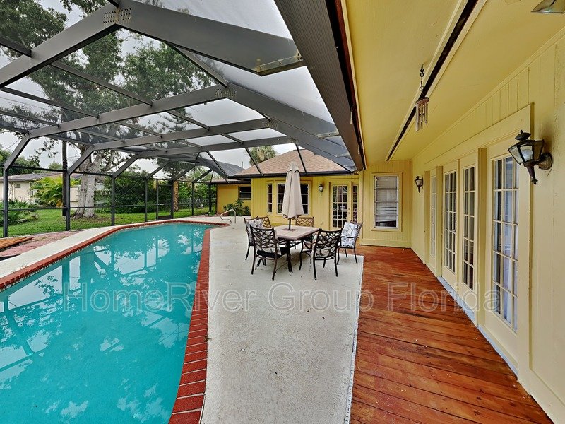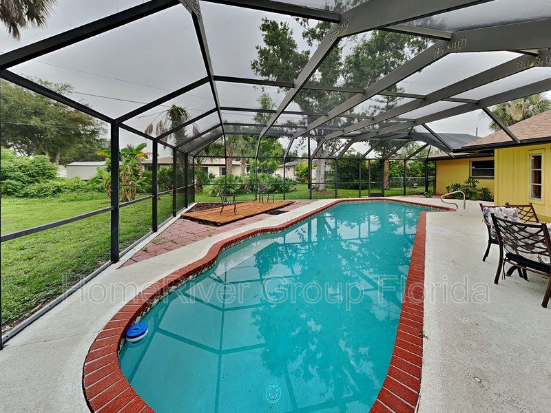 Outside, you'll discover a delightful pool area with a screened-in lanai. Imagine spending sunny afternoons lounging by the pool or hosting memorable gatherings with loved ones.