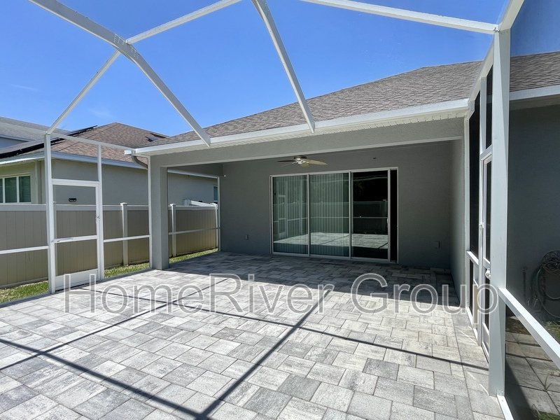 Coming Soon. Available June 9th. Stunning 4-bedroom, 3-bathroom home for rent, available now. This home is filled with attention to detail, featuring upgraded tile, crown molding, and high ceilings with LED lighting. The split bedroom floorplan includes a first bedroom and a full bathroom off the foyer. A versatile Flex Room can be used as a formal dining room, office, or den. The kitchen offers a butlers pantry with custom glass-inlaid cabinetry, quartz countertops, and a beverage fridge. It also boasts solid wood soft-close cabinets, pull-out shelving, upgraded appliances, a hood vent, pendant lights, and an island with barstool seating overlooking the living room and dining area. Sliding glass doors off the living room lead to a large screened-in patio. To the left of the kitchen, a hallway leads to a laundry room, two bedrooms, and a full bath with upgraded cabinets and quartz countertops. The primary suite at the rear of the house features luxury vinyl plank flooring, a large walk-in closet, and an ensuite bathroom with dual sinks, a garden tub, and a separate shower. The patio showcases beautiful pavers, a large covered lanai, and a screened area. The fully fenced backyard includes a shed for extra storage. The garage is equipped with cabinets, heavy-duty shelving, and a convenient side exit door. LAWN SERVICE IS INCLUDED. This home is conveniently located just minutes from I-75 and the Crosstown Expressway, and close to schools, parks, restaurants, and shopping. Make this home yours today!