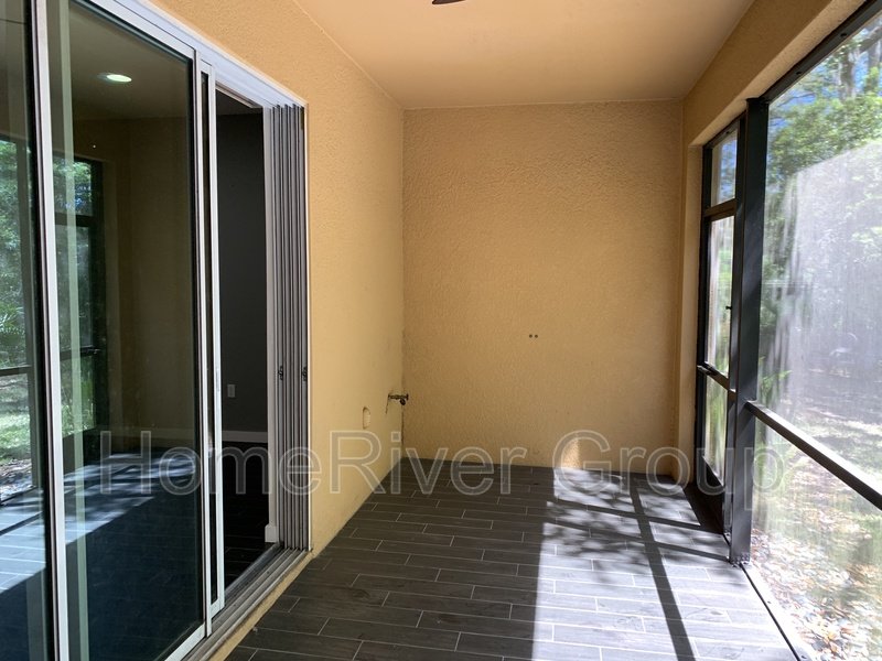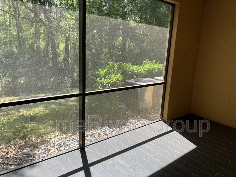 Coming Soon! This stunning 3-bedroom, 3-bathroom townhome offers elegant upgrades throughout, including new wood-look ceramic tile flooring in every room. The gourmet kitchen features 42" staggered upper wood cabinets, granite counters with a breakfast bar, tile backsplash, stainless steel appliances, pendant lighting, and a pantry all opening to a bright family room with beautiful wooded views. Step outside to a private, screened-in covered lanai complete with a double ceiling fan for year-round comfort. The spacious master suite is filled with natural light, while the luxurious en-suite bathroom boasts dual sinks, a glass walk-in shower with a rain shower head, and a linen closet. The upstairs also includes a convenient laundry area with washer, dryer, and shelving, plus two additional bedrooms that share a full bath. Located in the desirable Hidden River community, residents enjoy access to a pool, sauna, and fitness center.