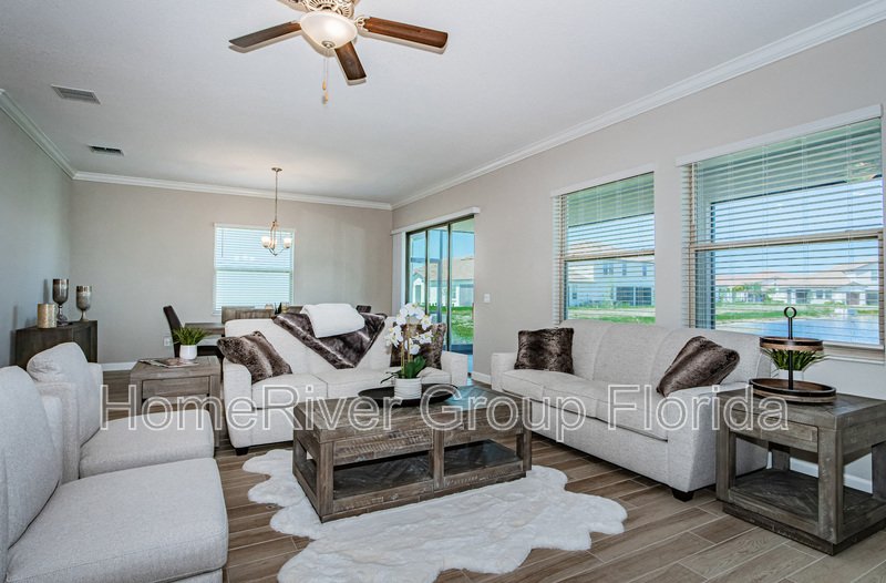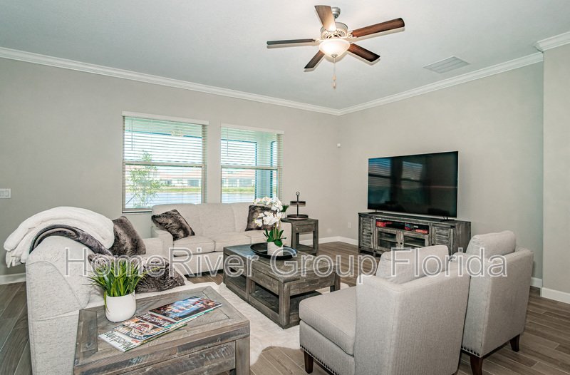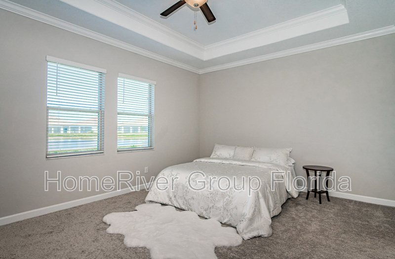 Welcome to this impressive home in the sought-after, highly desirable 55+ community of Medley Southshore Bay. One of Tampa Bay's best Active Adult Lifestyle Communities. This gorgeous home is brand new, with wonderful upgrades in place, including CROWN MOLDING, GAS STOVE, and STAINLESS-STEEL APPLIANCES. To top off the features of this home, a tile roof, an oversized lot that backs to a pond, and a paved driveway... ALL of this includes NO yard maintenance, Internet and Cable, a resort-style pool, tiki bar, fitness room, restaurant, GATED, and Security Guard at the main entrance. As if this weren't enough.. how about unlimited access to the BEAUTIFUL Crystal Lagoon! This is a very active 55 and better community, and this home checks off all of the boxes! The home is near major shopping centers, malls, community parks, and recreation areas, and with excellent access to I75 and I275. Just a short distance to our amazing Florida beaches & theme parks.