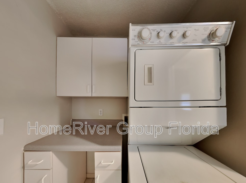 The split floor plan ensures privacy for the second bedroom and bath. A separate office/den with French doors offers versatility for an additional bedroom or workspace. The laundry room includes a stackable washer and dryer for convenience.